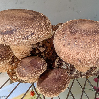 I then went to visit the Forest Fungi with two close friends, to learn about farming mushrooms. I was struck by the prolific growth in the dark and the silence. In turn I was reminded of the long traditions in various religions of silent meditation and the power in ordinary human relationships of sometimes being together in silence with ones that we love, without having to break or fill that silence with empty chatter. Human beings tend to see a productive life in terms of light and sound but so much that sustains life on earth happens in the dark under our feet. Fascinated, I took home with me a 'log' infused with fungi spores, watered it daily and was delighted when it flourished: